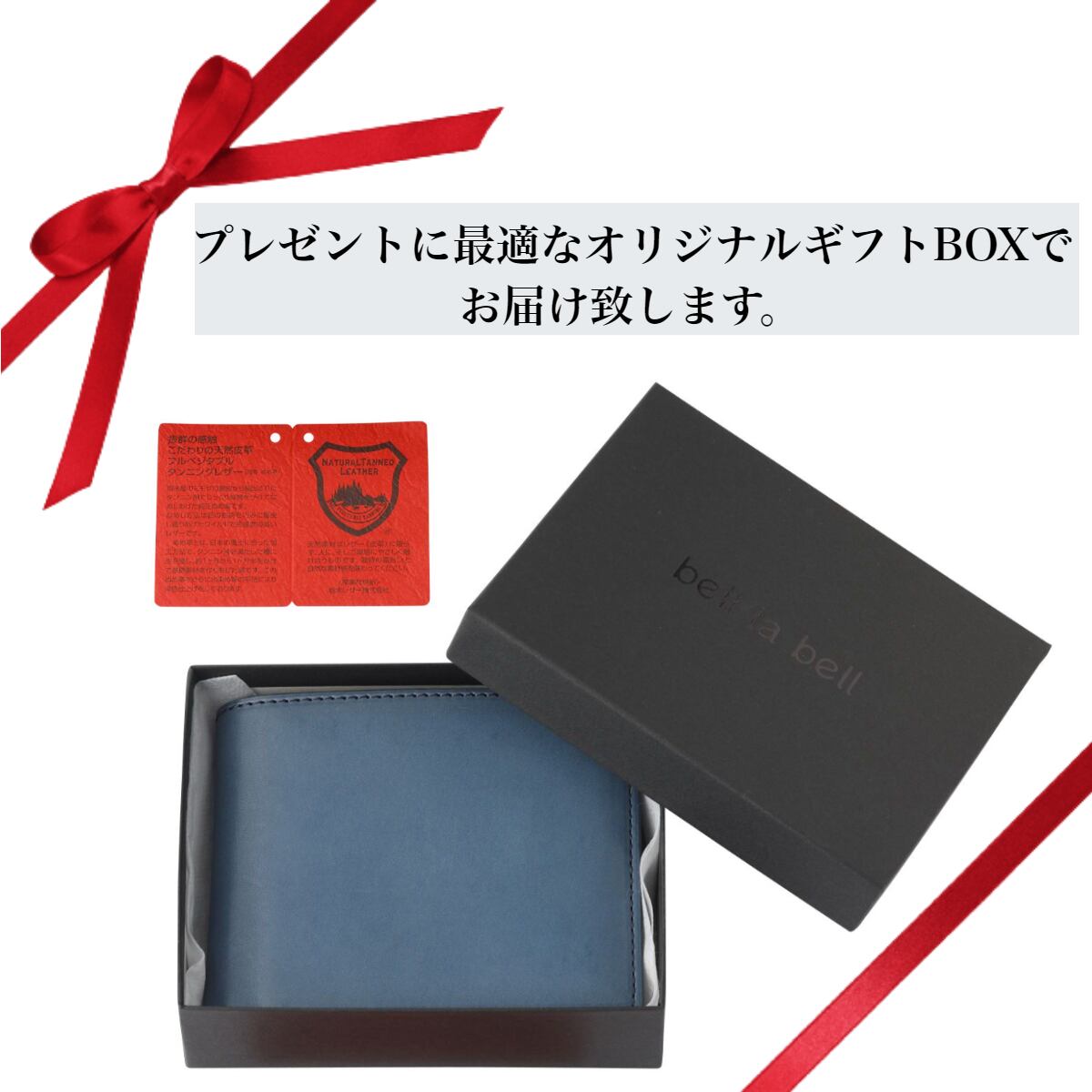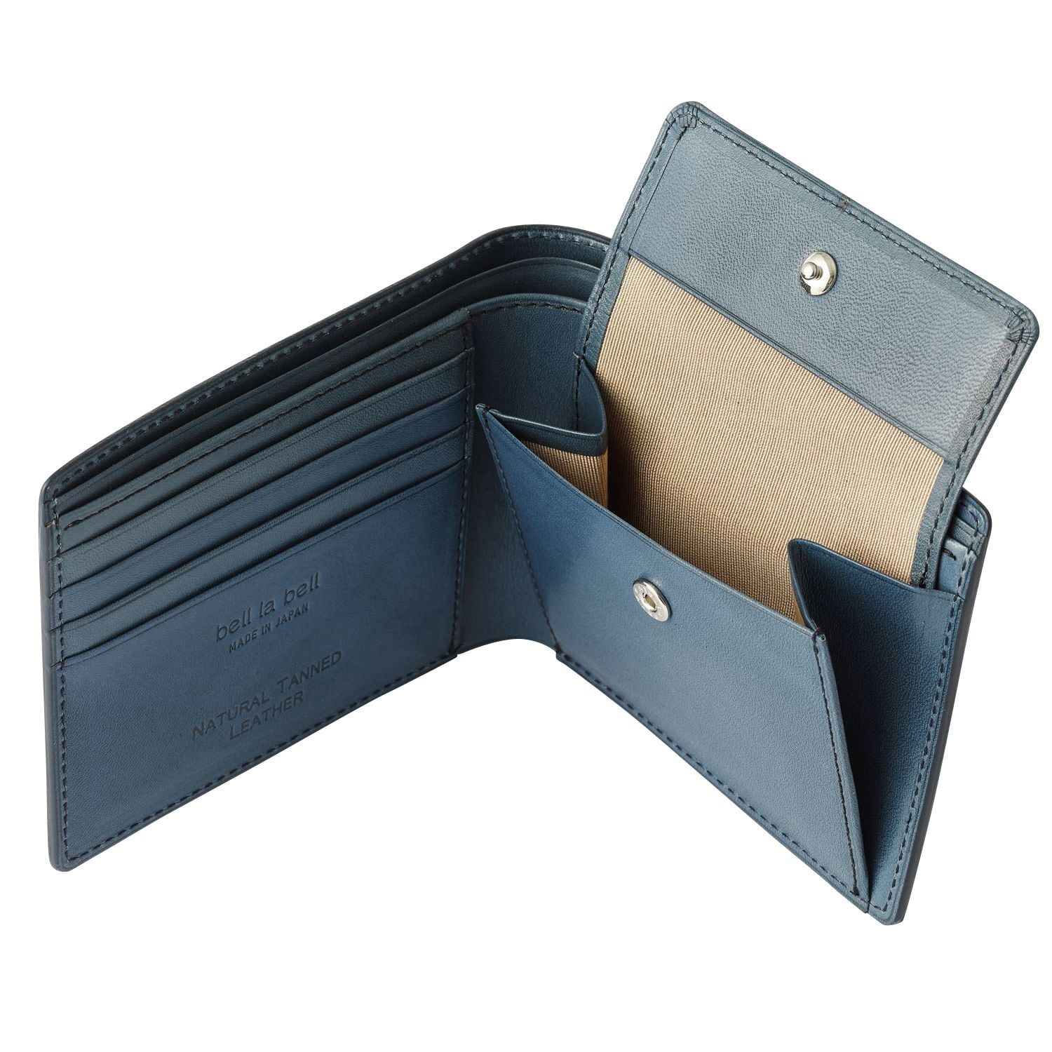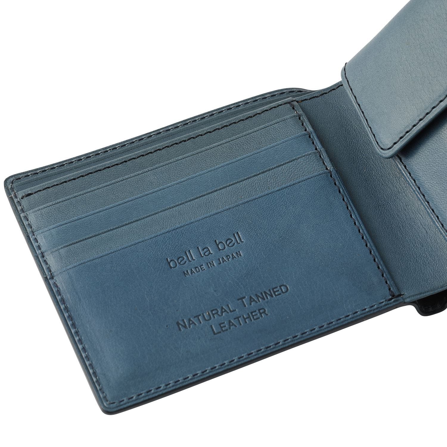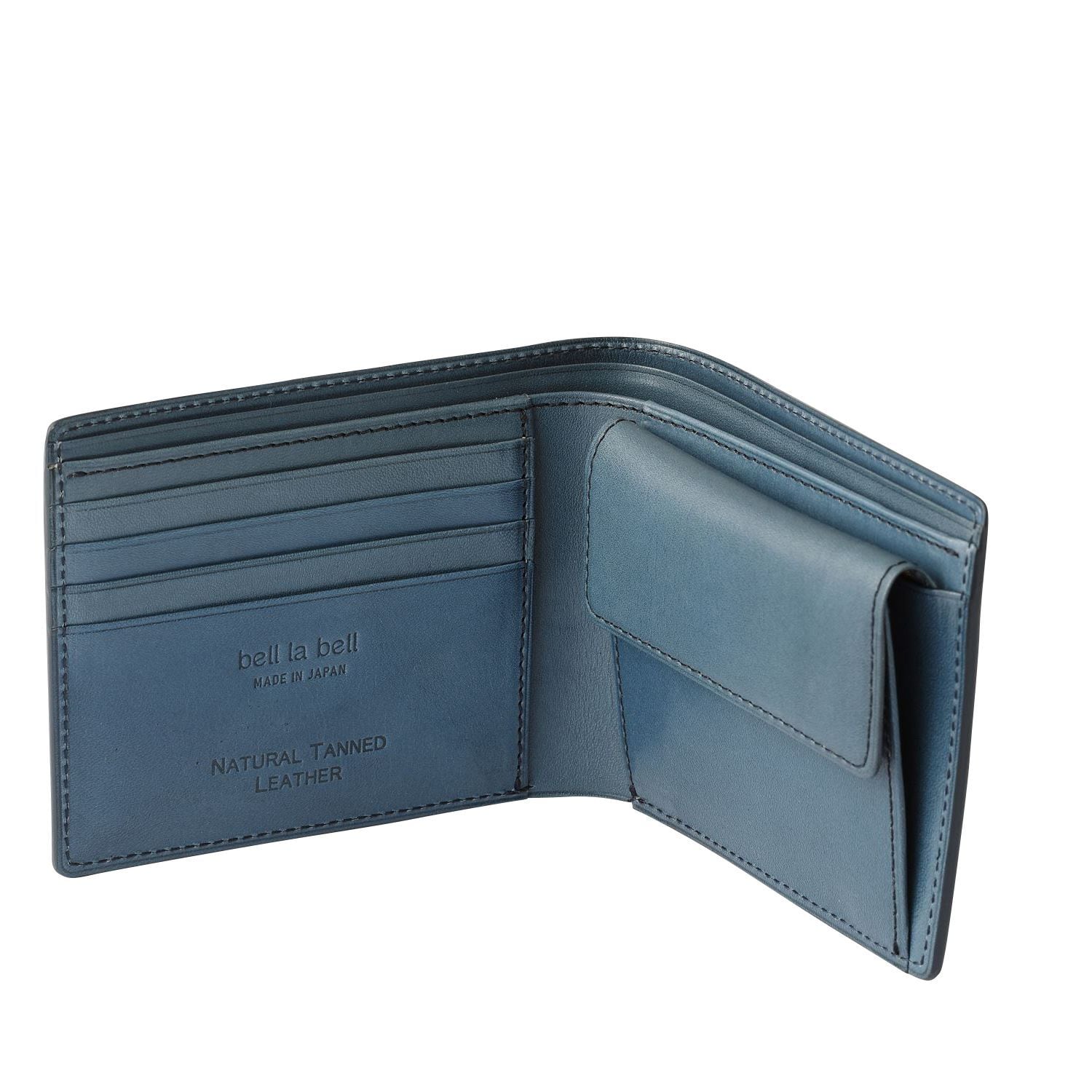 栃木レザー使用の高級感あふれる二つ折り財布「bell la bell」。丁寧な手作りによって仕上げられた、日本製の逸品です。